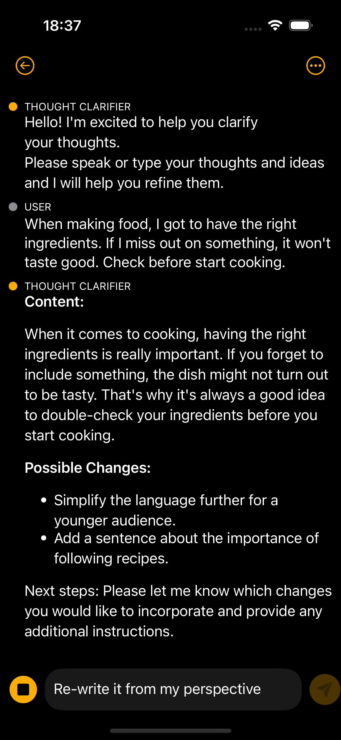 - Speak your mind and let the app organize your thoughts into coherent sentences.