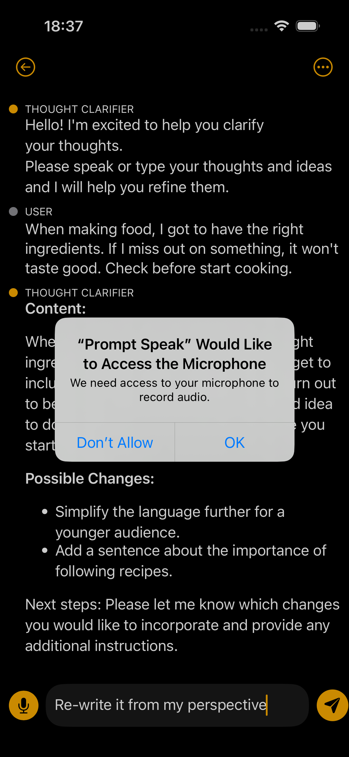 Create Hooks for your reels and posts, take audio notes let PromptSpeak help you create meaningful comments.